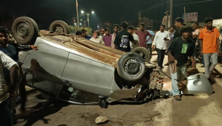गडचिरोली : कारगिल चौकात कार पलटून चालक जख्मी