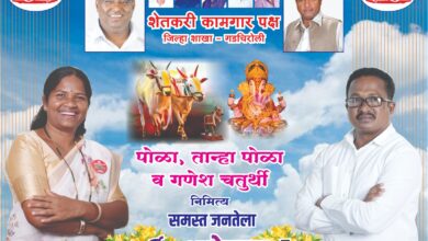 लोकशाही न्युज, गडचिरोली (दि,२ सप्टेंबर) शुभेच्छुक: शेतकरी कामगार पक्ष जिल्हा शाखा – गडचिरोली भाई रामदास जराते प्रदेशाध्यक्ष,आदिवासी,भटके- विमुक्त आघाडी महाराष्ट्र…