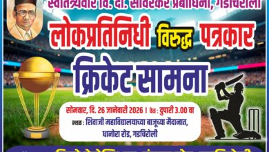 लोकशाही न्युज, गडचिरोली (दि. २४ जानेवारी) स्वतंत्र्यवीर वि. दा. सावरकर प्रबोधिनी तर्फे दरवर्षी २६ जानेवारीला लोकप्रतिनिधी विरुध्द पत्रकार क्रिकेट सामना…