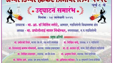 लोकशाही न्युज, गडचिरोली (दि. २४ जानेवारी) अप्पर-डीप्पर ग्रुप च्या वतीने प्रीमियम लीग २०२६ पर्व आठवे चे उद्घाटन आज शिवाजी महाविद्यालय…