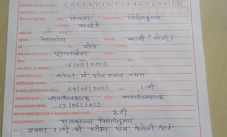 संबंधित पालकाला त्याच्या मुलाची टी सी अर्धवट भरलेली देण्यात आली.