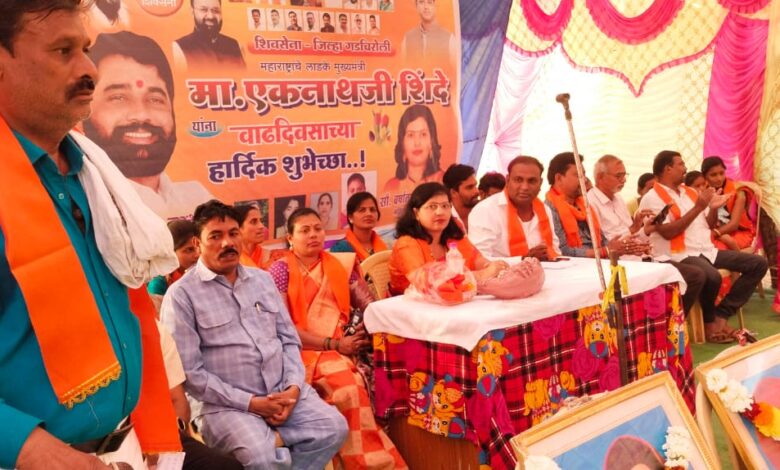कार्यक्रमाच्या सुरुवातीस छञपत्ती शिवाजी महाराज ,हिन्दु ह्रदय सम्राट बाळासाहेब ठाकरे,स्व.आनंद दिघे यांचे प्रतिमेस क्रांतीसुर्य महात्मा ज्योतीबा फुले,क्रांतीज्योती साविञीबाई फुले यांच्या प्रतिमेस समोर दिप प्रज्वलन करुन माल्यार्पण करण्यात आले. यावेळी विधानसभेच्या सभापती नीलम गोरे यांनी सगळ्यांना शुभेच्छा संदेश पाठवून पदाधिकाऱ्यांचा आनंद दिगुनित केला. यावेळी गडचिरोली शिवसेना जिल्हाध्यक्ष राकेश बेलसरे,मुख्यमंञी यांना वाढदिवसाच्या शुभेच्छा देण्याकरीता भारतीय जनसंसदेचे गडचिरोली जिल्हाध्यक्ष विजय खरवडे, जिल्हा उपाघ्यक्ष राजु कावळे, जिल्हाउपाध्यक्ष अविनाश वरघंटीवार, युवा सेनेचे जिल्हाध्यक्ष दीपक बारसागडे, तसेच मा.मसराम, शिवसेना महीला जिल्हाध्यक्ष श्रीदेवी वरघंटीवार,जिल्हा उपाध्यक्ष संगीता हर्षे,जेष्ट नाट्य कलावंत शेखर पटले,यांचेसह अनेक कार्यकर्ते उपस्थित होते.