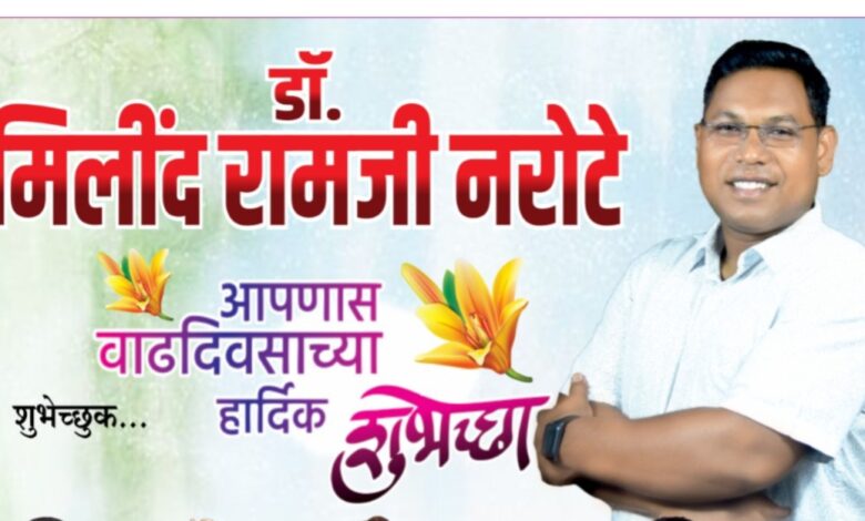 डॉ. मिलींद नरोटे यांच्या वाढदिवसानिमित्य मित्र परिवारांच्या वतीने उद्या ३० जुलै रोजी गडचिरोली विधानसभा क्षेत्रात विविध कार्यक्रमाचे आयोजन करण्यात आले आहे.