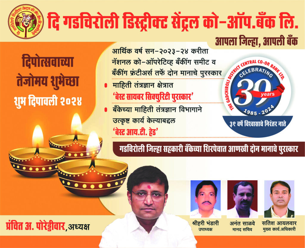 गडचिरोली जिल्हा वासियांना दिपावलीच्या हार्दिक शुभेच्छा!