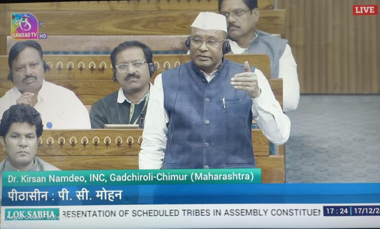 संसदेचे हिवाळी अधिवेशन दिल्ली येते सुरु आहे. या अधिवेशनात गोवा राज्य विधानसभेत आदिवासी समाजाला, वाढलेल्या लोकसंख्येच्या अनुपातात प्रतिनिधीत्व देण्यासंदर्भात मांडण्यात आलेल्या विधेयकास गडचिरोली -चिमूर लोकसभा क्षेत्राचे लोकप्रिय खासदार डॉ. नामदेव किरसान यांनी आपले समर्थन दिले.