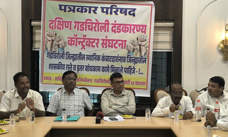 पालकमंत्री व मुख्यमंत्री देवेंद्र फडणवीस असलेल्या गडचिरोली जिल्ह्यात शासकीय रस्ते व इतर बांधकामात असलेल्या जाचक अटी रद्द करून फेरनिविदा कराव्यात जेणेकरून स्थानिक कंत्राटदारांना रोजगार उपलब्ध होईल अशी मागणी आज सर्किट हाऊस कॉम्प्लेक्स (दि. २८ जुलै) येथे झालेल्या पत्रकार परिषदेच्या माध्यमातून दक्षिण गडचिरोली दंडकारण्य कॉन्ट्रॅक्टर संघटनेच्या पदाधिकारी व कार्यकर्ते यांनी केली आहे.